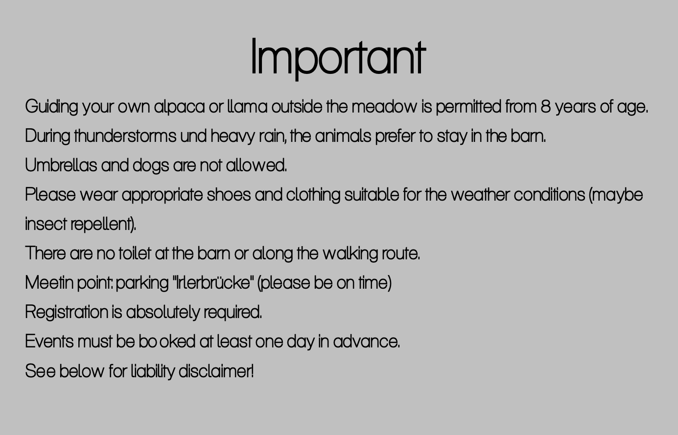 Entering the meadow and visitinig our alpacas is entirely at your own